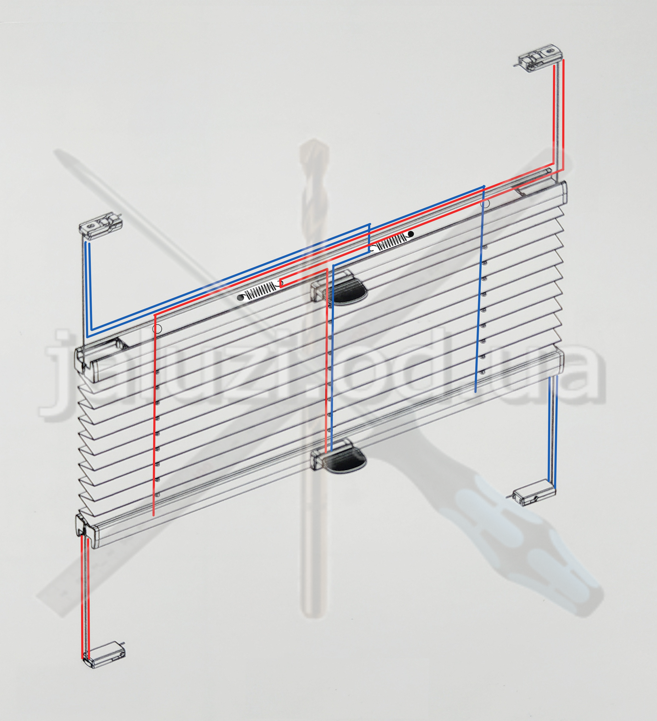 - монтаж корду до кріплення жалюзі плісе.